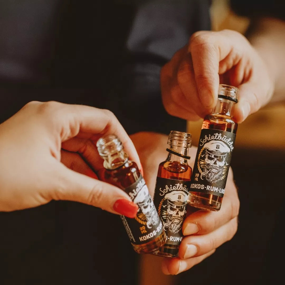 Zwischen Elbwind und Kiezflair haben wir unseren Kokos-Rum-Likör so gemischt, dass er weich, rund und unkompliziert schmeckt. Genau richtig für alle, die einfach guten Genuss mögen.Pur, auf Eis oder im Mix – Schietbüddel macht jeden Moment ein bisschen hanseatischer. Prost, auf euch!